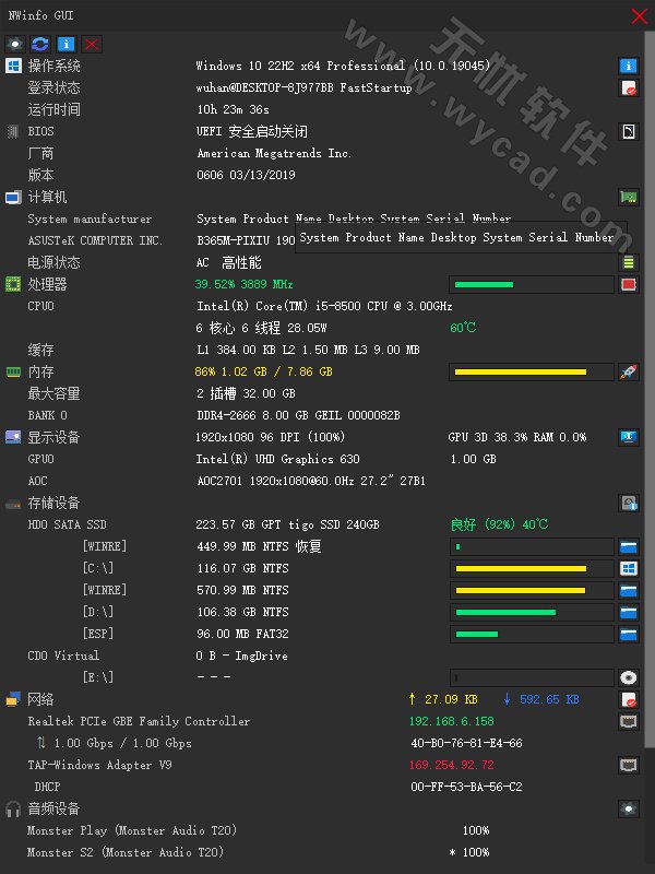 多源信息获取:NWinfo可以从SMBIOS、CPUID、S.M.A.R.T.、PCI、EDID等多个来源获取详细的硬件和系统信息。